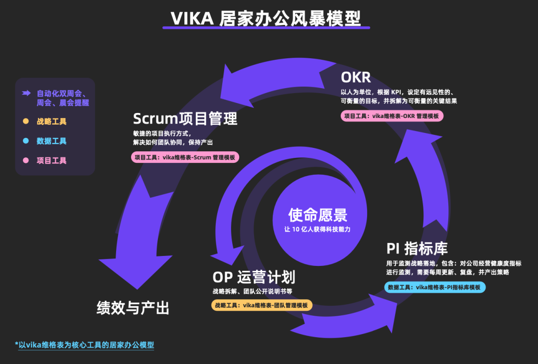 2022 年,深圳受疫情影响封城,vika维格全线转为居家办公模式。在此期间,他们停工 0 天,稳定保持每月 2 次版本更新,月均迭代交付 46 项。截至 2022 年 Q1,月度业绩 200% 的环比复合增长,服务企业组织突破 15000+。在这期间,他们总结了一套从制度、流程以及工具层面搭建起的居家办公模型,提高企业居家远程办公的效率。(感兴趣的小伙伴,可以找文末小姐姐领取一份直播PPT哦~)
