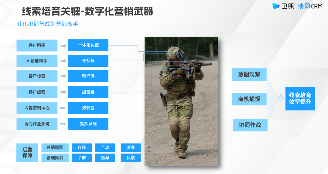 卫瓴是一款营销工具,如果没有市场部的参与是不可能的。但有些B2B企业甚至连市场部都没有,我跟他们说,你应该拥有营销能力,而且