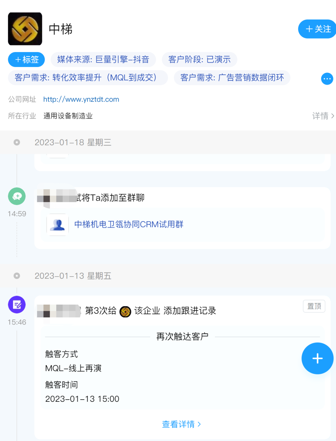 在云南中梯答应了卫瓴共创客户案例的邀约之后,市场部会先在卫瓴·协同CRM的系统中查看该客户的客户画像,通过画像可以初步了解到他们的选型经历、最初痛点、跟进过程等等。