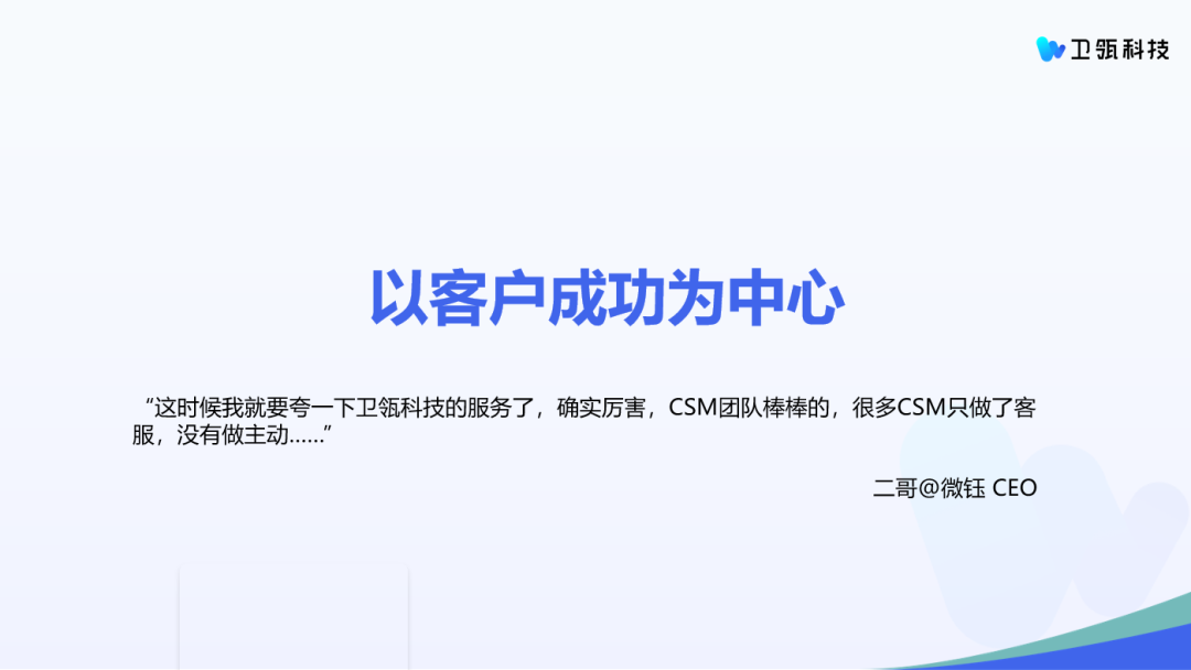 所以卫瓴的理念就是,不卖多年单,做足客户成功,不卖不对的客户。
